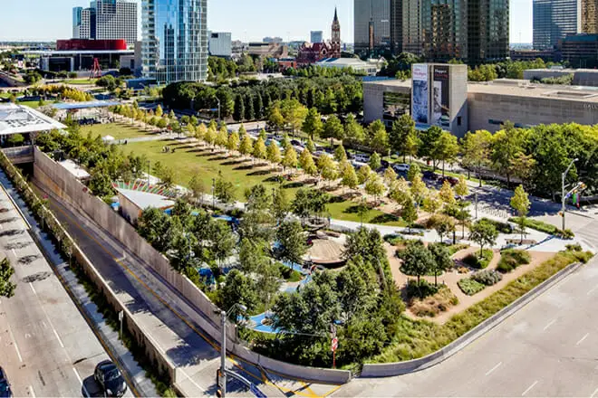 También hay una serie de camiones de comida donde encontrará sabrosos bocadillos que les encantarán a sus hijos. Y, como ventaja adicional, el parque es un excelente lugar para tomarse una selfie con el horizonte de Dallas como telón de fondo.
