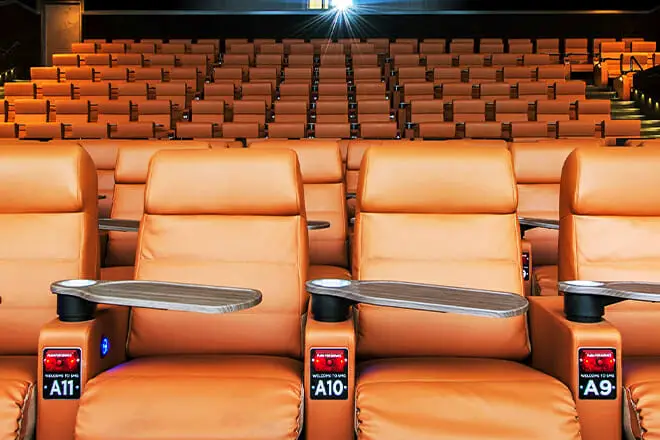Su servicio de restaurante también está disponible en cualquier momento de la película. Todo lo que tienes que hacer es presionar un botón y un mesero estará allí para recibir tu pedido. Es una excelente forma de disfrutar de su servicio mientras ves la película sin apenas interrupciones.