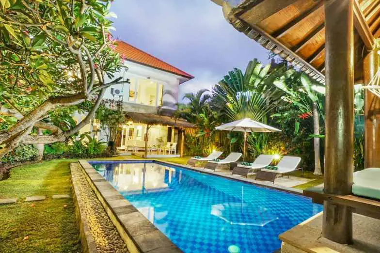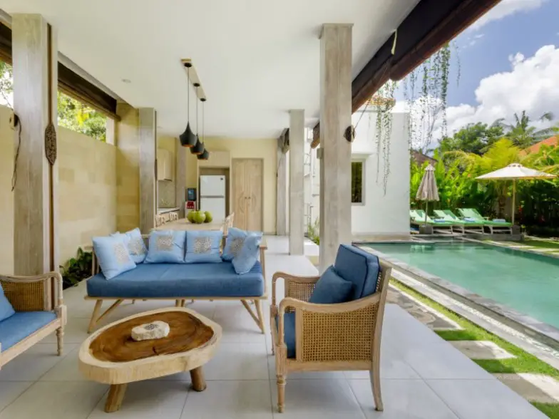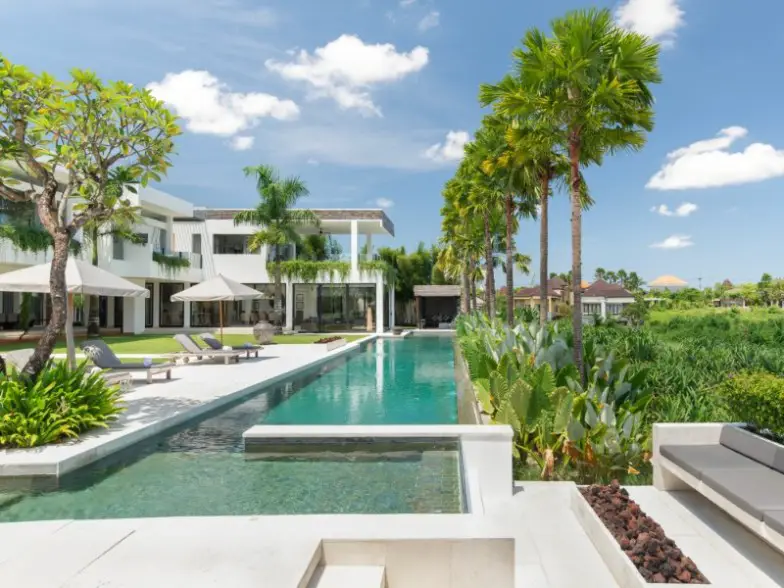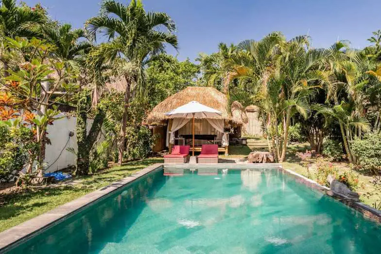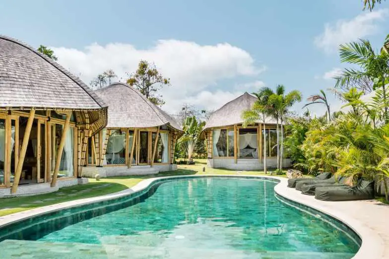 A massive property with five bedrooms, The Palm House fits 12 guests, where you’re spoiled with views of the rice paddies and a sparkling pool. Just a short drive from Canggu, one of the trendiest area’s in Bali, you’ll be treated to an outdoor lounge, entertainment room, barbecue area and spacious rooms with large windows that offer views of your tropical surroundings. You’ll also have access to a villa manager, private chef, cocktail barman, housekeeping and overnight security.