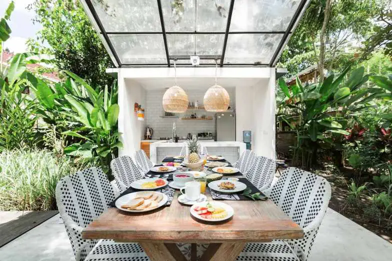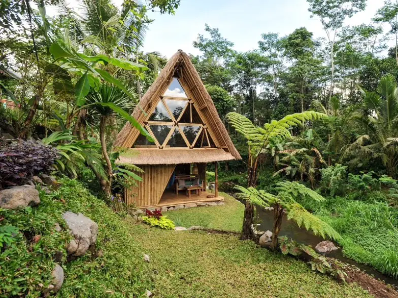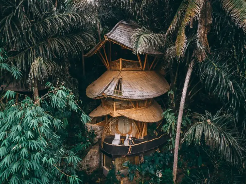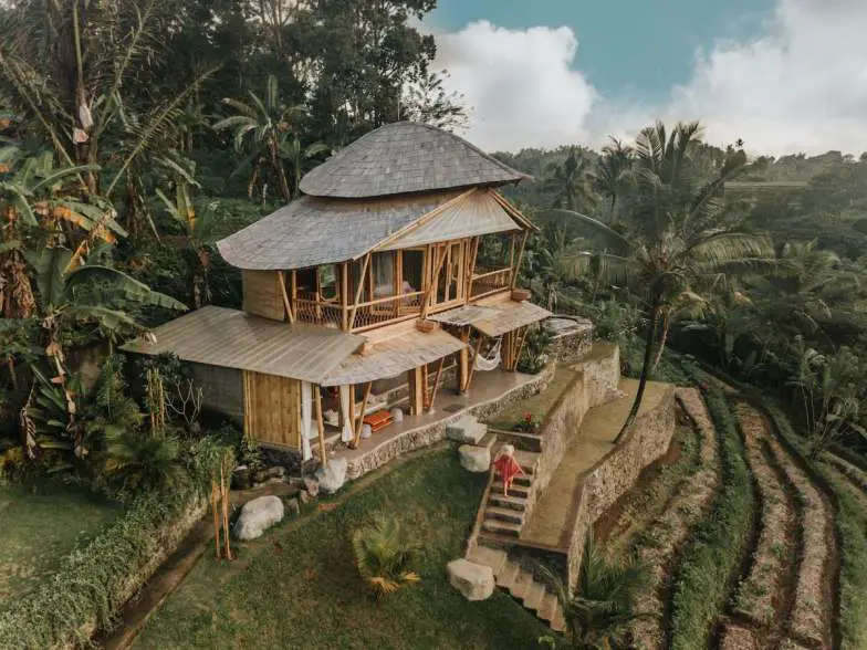 Aura House es uno de los mejores alquileres de Airbnb en Bali. La casa de bambú ecológico se construyó en el río Ayung, a unos 25 minutos de Ubud, y cuenta con hermosas vistas del amanecer, así como dos habitaciones con baño, una gran sala de estar y una piscina privada. Es un punto de acceso para parejas aventureras o cualquiera que busque desconectarse de la ajetreada vida de la ciudad.