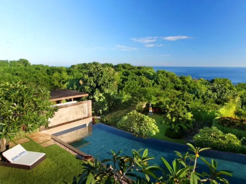 Este lujoso apartamento de cinco habitaciones puede ser su hogar lejos del hogar, donde puede sentarse y admirar las espectaculares vistas desde los altos acantilados de Bukit y el Océano Índico desde el estudio, el comedor y las salas de estar y aprovechar las comodidades de 5 estrellas. . Dese un chapuzón en la espectacular piscina de 80 pies, reserve un masaje en el jardín y deje que el personal de talentosos chefs, amas de casa y jardineros lo mimen durante su estadía.