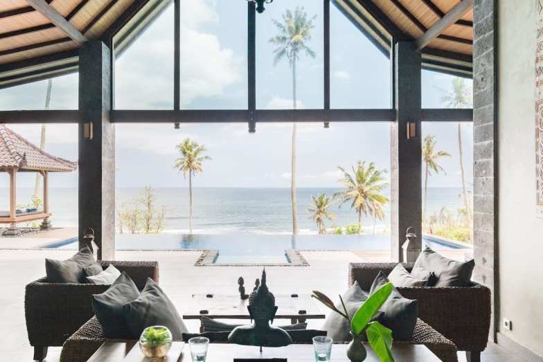 Más que una habitación con vista, este Airbnb de dos habitaciones tiene todo lo que necesitas para una escapada memorable. La espaciosa villa de dos dormitorios tiene vista a la pintoresca playa de Balian e incluye un desayuno orgánico a la carta con su estadía, además de un servicio de mucama, masajes en la villa y cenas a pedido.