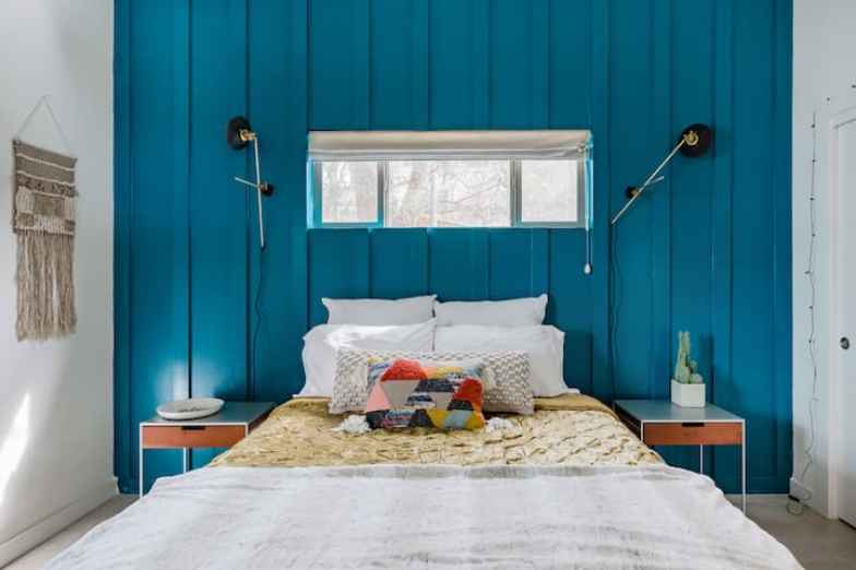 Ubicado en el este de Austin, conocido por su ambiente divertido y creativo, este "plataforma de choque" está a solo unas cuadras de Town Lake, donde puede terminar cada día con una espectacular puesta de sol. Estarás cerca de cafeterías, restaurantes, bares y otras atracciones populares. Un bungalow privado con mucha luz natural y un "interior obsesivamente curado", tiene capacidad para cuatro en un dormitorio con una cama queen más un sofá cama e incluye una cocina con lavavajillas y todos los elementos esenciales con té y café. También se incluye TV con canales básicos y acceso a Netflix y aire acondicionado.