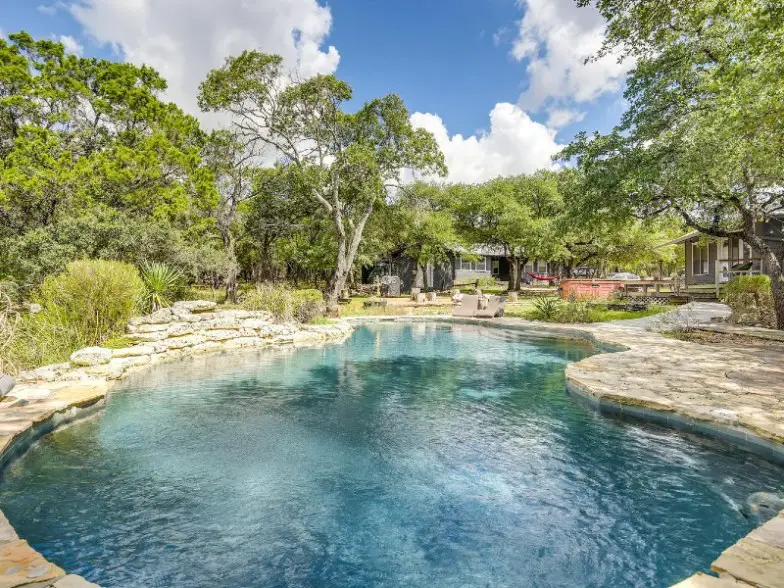 Ubicado en 85 acres vírgenes en Texas Hill Country, lejos del ajetreo y el bullicio pero a poca distancia en automóvil del centro de Austin, este pequeño retiro en el hogar ofrece una estadía tranquila que incluye una hermosa piscina compartida. La propiedad incluye senderos panorámicos para pasear, gallinas y Emu para huevos frescos gratis, huertos para fruta fresca e incluso un área para jugar al golf de disco. Hay amistosas cabras camperas que deambulan y los ciervos ocasionales que también visitan. La casa es adecuada para hasta dos, con una cama a la que se accede a través de una escalera estrecha, elevada en el techo. Incluye una pequeña cocina, baño completo, Wi-Fi y TV.