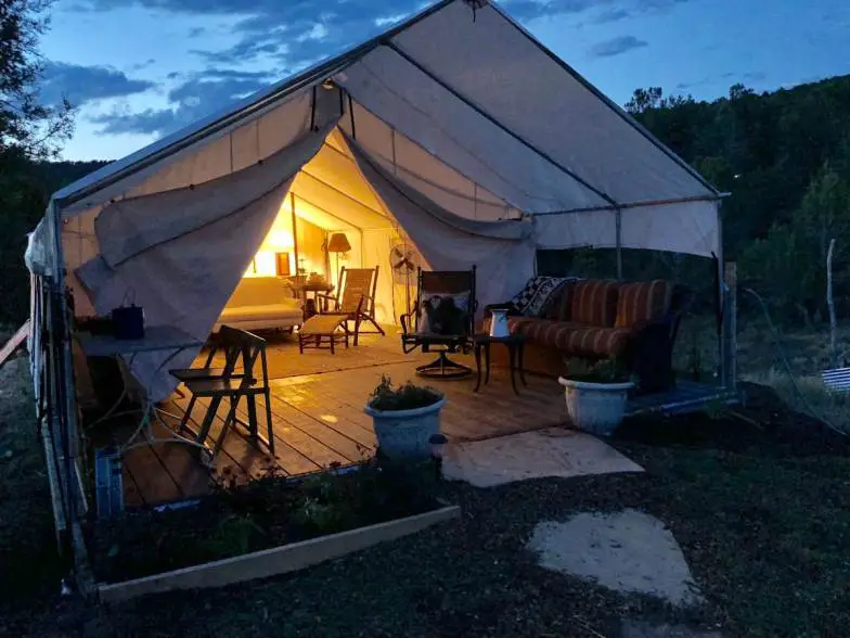 Como su nombre lo contradice, esta estadía en una tienda de safari ha sido nombrada entre los mejores lugares para hacer glamping en todo el país. Se encuentra en un rancho de caballos de 100 acres a solo minutos de Carbondale, a 30 millas de Aspen, en el corazón de las Montañas Rocosas. Tendrá acceso a senderos para caminatas en el bosque junto con animales como pollos, caballos, vacas, alpacas, pollos y cerdos, con cerditos que a menudo también deambulan. Se encuentran disponibles recorridos por la granja y "Picnics de alpaca" y hay una gran hoguera comunitaria para hacer S'mores. Croquet y bochas también están disponibles. Despierte con un delicioso café prensado a la francesa y prepare el desayuno con huevos frescos de granja y tocino orgánico de cosecha propia, mientras pasa las noches bajo un brillante cielo estrellado.