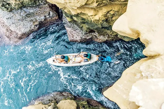 Mientras navegas en kayak, pasarás por las cuevas marinas. Asegúrese de solicitar recorridos que lo lleven a través de la cueva de Clam. El ladrido de los lobos marinos es ensordecedor aquí y no es un lugar al que quieras ir por tu cuenta.