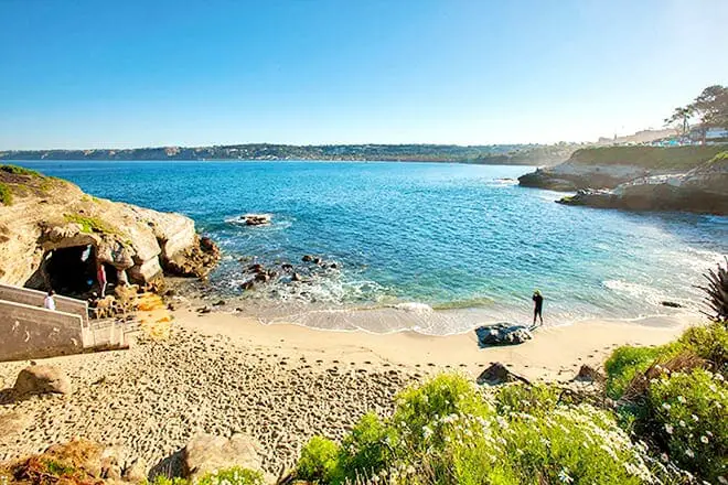 Esta pequeña cala definitivamente está en la lista de cosas geniales para hacer en San Diego con niños. Es predominantemente una pequeña playa rodeada de muchos acantilados de arenisca. Pero el área tiene una variedad de cosas que hacer para toda la familia.
