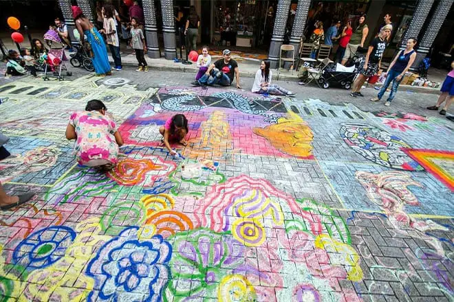 Si vienes en octubre, puedes presenciar Chalk It Up por ti mismo. ¡Es una celebración anual en toda la ciudad donde los artistas llenan Houston Street con dibujos de tiza!