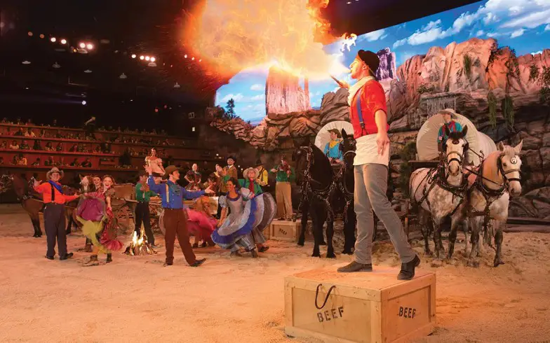 ¿Por que hacerlo?Disfrute de la auténtica cocina sureña mientras ve el espectáculo en vivo que presenta 32 caballos, luces y sonidos dramáticos, ¡e incluso pirotecnia!