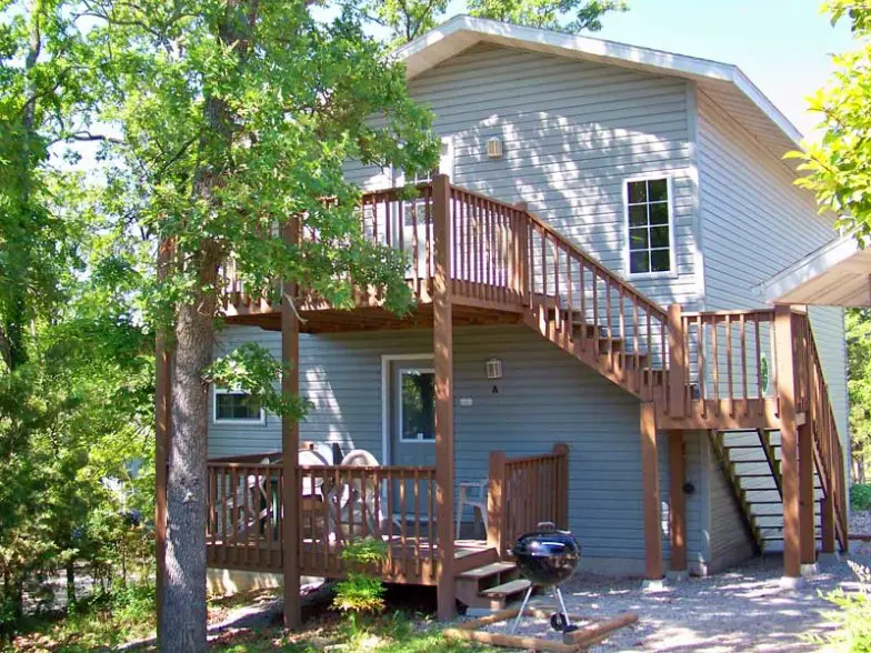 El Tribesman Resort está ubicado en Table Rock Lake y está cerca tanto de la ciudad de Branson como del parque temático Silver Dollar City. Ubicado en un fondo rústico y boscoso hay una variedad de cabañas y apartamentos que tienen hasta 6 habitaciones y 6 baños, cocinas pequeñas o completas e incluso lavadoras y secadoras en unidades seleccionadas. Es todo lo que tu familia necesita para sentirse como en casa. Además, el complejo ofrece muchas comodidades, que incluyen dos puertos deportivos con alquiler de botes, una sala de juegos, senderos naturales, una sala de juguetes para niños pequeños y cinco piscinas, así como tres jacuzzis al aire libre.