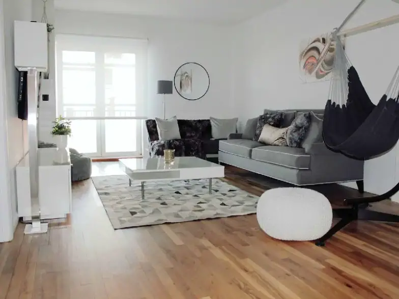 Algo así como una habitación de hotel, pero mucho mejor, este apartamento tipo estudio tiene una hermosa cocina, un baño y una sensación general de amplitud en todo el espacio para dormir. Incluso hay una mesa bistró para disfrutar de comidas y café. La guinda del pastel es un lugar para salir y relajarse, mientras que aquí también se puede lavar la ropa.