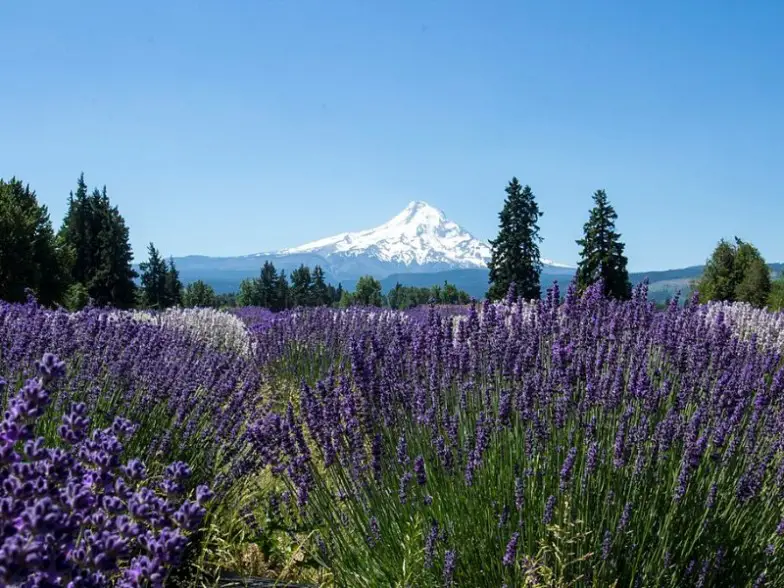 Lavender Valley Farm se encuentra a la sombra de dos volcanes activos, Mount Adams y Mount Hood. El suelo es especialmente rico y fértil, mientras que el valle del río Hood cuenta con un microclima único, ideal para el cultivo de lavanda. Hay más plantas de lavanda que los visitantes pueden ver en flor desde mediados de junio hasta julio, así como comprar flores frescas, aceite esencial de lavanda, productos de belleza, miel de lavanda y más. La granja es libre para pasear e incluso puedes armar un ramo de lavanda para llevar a casa por un módico precio. Mientras esté aquí, puede hacer un recorrido por las famosas cascadas en el desfiladero del río Columbia y disfrutar del windsurf de renombre mundial y otros deportes acuáticos en el río.