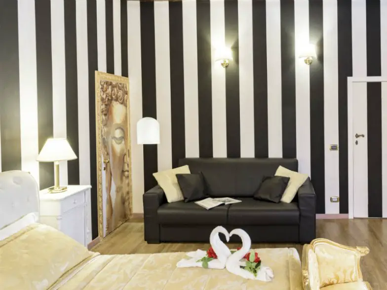 La estructura del siglo XVII es la base de este lujoso Airbnb Plus en el centro histórico de Roma. Llamativas rayas doradas y negras adornan las paredes, los muebles elegantes agregan el toque exclusivo, los acentos de mármol hacen que el lugar brille. La ubicación pone a los huéspedes cerca de la icónica Fontana de Trevi y la Plaza de España.