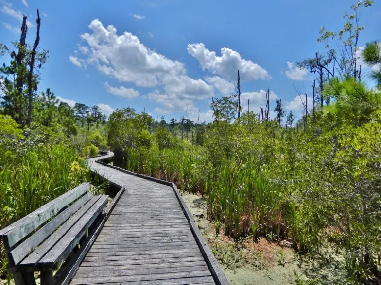 El Parque Estatal Goose Creek, ubicado a lo largo de Pamlico Sound, ofrece vistas únicas de los humedales, con musgo español y grandes robles. Hay un extenso paseo marítimo que serpentea a través del área, así como ocho millas de senderos, por lo que hay muchas oportunidades para detenerse y disfrutar del paisaje. También hay un centro de educación para visitantes cerca para aprender sobre la flora y la fauna de la zona.