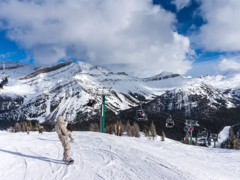Uno de los otros dos resorts en Banff junto con Sunshine Village, el Lake Louise Ski Resort está rodeado de un paisaje asombroso, ubicado en las Montañas Rocosas canadienses con una cumbre de más de 8,650 pies de altura. Ha sido nombrada la estación de esquí número uno del país y es la más grande de la región. El diseño único ofrece carreras para principiantes, intermedios y expertos desde cada silla, perfecto para familias o grupos de diferentes habilidades para esquiar mientras comparten la experiencia juntos. Hay un sinfín de toboganes, claros y barrancos, pendientes suaves, carreras de crucero y cuencos remotos junto con algunos de los terrenos más desafiantes de las Montañas Rocosas canadienses. El terreno se asienta sobre cuatro caras de montaña y cuenta con 145 carreras con más de 3,000 pies de desnivel. La parte trasera a menudo se compara con los Back Bowls en Vail, Colorado, con toboganes negros dobles para esquiadores extremos.