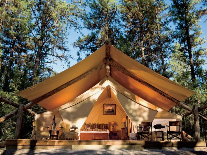 The Resort at Paws Up a menudo se encuentra en la cima de algunos de los mejores resorts del país o cerca de ellos. Ofrece un lujo incomparable entre la naturaleza virgen en Blackfoot Valley, ubicado en 37,000 acres en un auténtico rancho de ganado en funcionamiento. Los alojamientos incluyen de todo, desde sofisticadas tiendas estilo safari para glamping hasta casas privadas grandes y lujosas. Aquí puede pasar una hora, un día o incluso una semana a caballo, lanzar su línea en aguas de pesca con mosca de clase mundial para truchas asesinas y esperar disfrutar de tratamientos de spa celestiales en la habitación después.