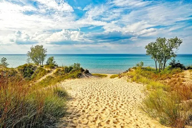 El Parque Nacional de las Dunas de Indiana tiene un tramo de 15 millas de arena blanca, lo que lo hace perfecto para una escapada de un día en la playa. Además de eso, hay 50 millas de senderos a lo largo de la orilla del lago donde los visitantes pueden andar en bicicleta, caminar, observar aves, montar a caballo o esquiar a campo traviesa.