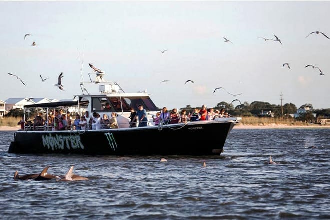 No solo es probable que vea delfines jugando en la estela de sus barcos de alta potencia, sino que también podrá disfrutar de las serenas aguas costeras de Tybee Island.