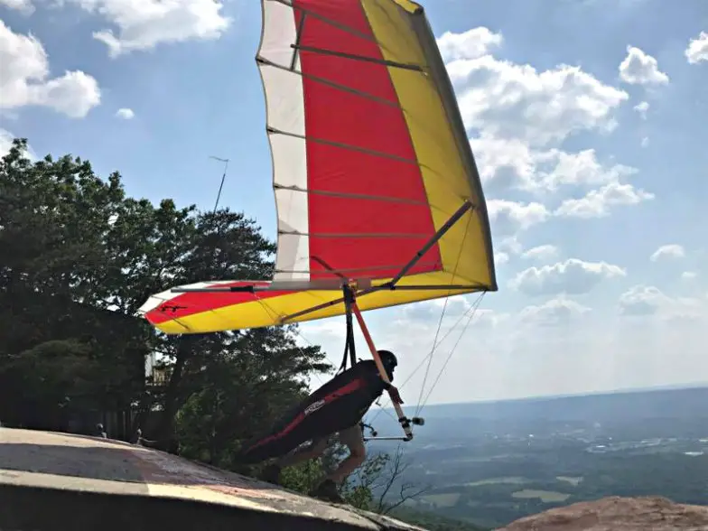Salta desde la plataforma de lanzamiento de concreto de 1,340 pies en McCarty's Bluff de Lookout Mountain, donde puedes volar en tándem o incluso aprender a ir solo a lo largo de suaves colinas de entrenamiento. Hay opciones cuando se trata de elegir su experiencia, pero puede pasar un día o pasar un fin de semana extremo en las montañas a través de alojamiento en el lugar.