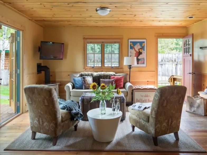 Teton Village está a una milla de distancia del parque, pero se encuentra justo en los talones de Jackson Hole Mountain Resort. El esquí de clase mundial se encuentra en el patio trasero de esta cabaña. En el interior pueden dormir 12 personas en acogedoras habitaciones hogareñas. Disfrute de una sutil decoración rústica, una hermosa chimenea y enormes ventanales para contemplar las montañas. Las noches se pasan mejor en el jacuzzi privado, con una copa de vino.