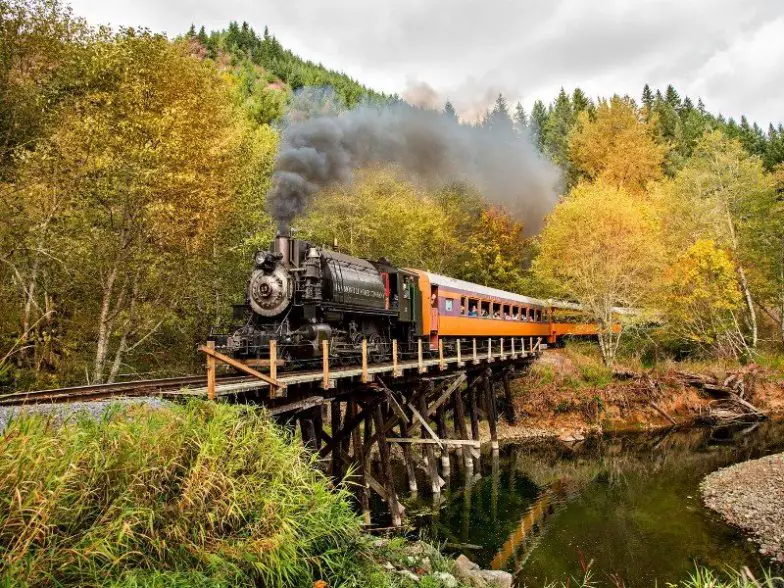 Mount Rainier Railroad se encuentra justo al sur del parque en la pequeña ciudad de Elbe. Aquí, los pasajeros pueden embarcarse en un viaje en tren de vapor a través del bosque y cruzar el río Upper Nisqually alimentado por glaciares hasta un museo situado en la ciudad de Mineral. Sus exhibiciones incluyen una colección completa de locomotoras madereras a vapor y la oportunidad de descubrir las historias detrás de los pioneros de los campamentos madereros ferroviarios a principios y mediados del siglo XX. La excursión está disponible de mayo a octubre, aunque a menudo también se programan eventos festivos especiales en otras épocas del año.