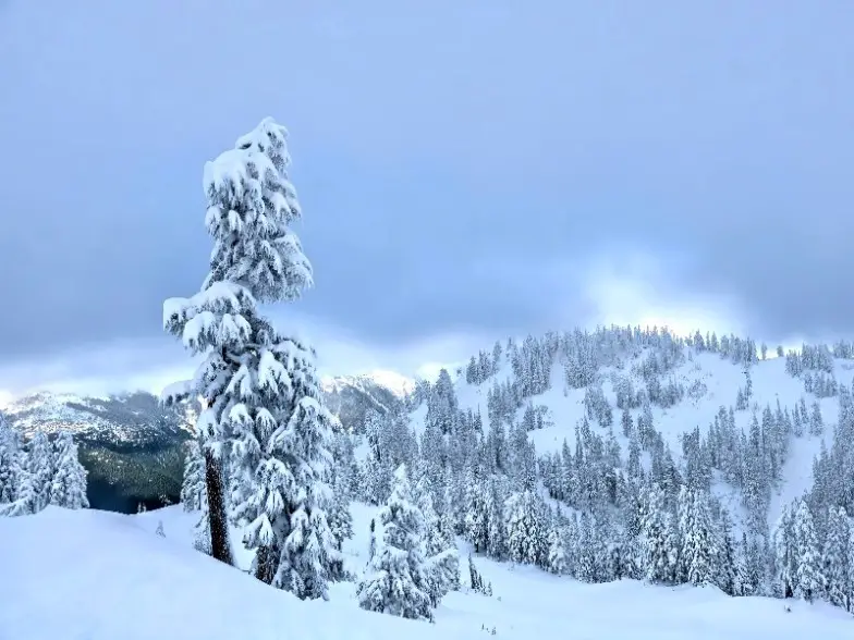 Visitar Mount Rainier durante los meses más fríos del año significa experimentar un verdadero paraíso invernal con gran parte del paisaje y la vida local durmiendo pacíficamente bajo los mantos de nieve profunda, aparte de la perdiz nival y la liebre con raquetas de nieve que ocasionalmente dejan huellas en el polvo fresco Este es uno de los mejores lugares del mundo para los amantes de la nieve, con un promedio de 640 pulgadas al año; más de 1,035 pulgadas cayeron durante el invierno de 1998/1999. En el área de juegos de nieve de Paradise, los visitantes pueden disfrutar de todo ese polvo haciendo tubing y snowboard, o tomando una caminata guiada con raquetas de nieve dirigida por guardaparques, disponible los fines de semana desde fines de diciembre hasta marzo desde el Centro de visitantes de Paradise.