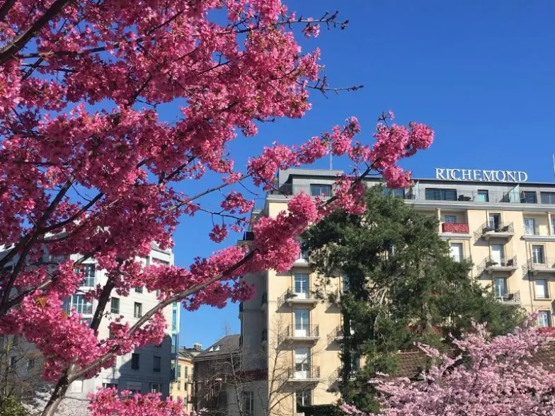 Le Richemond es otro maravilloso hotel a orillas del lago Lemán y con vistas al icónico Jet d'Eau. Hay 109 habitaciones y suites en este hotel, y el chef Phillippe Bourrel prepara una increíble cocina francesa en el restaurante del hotel llamado The Garden. El único spa Sisley exclusivo de Suiza se encuentra aquí para tratamientos y masajes, y también hay una sala de fitness y relajación disponible. El Bar es un gran lugar para cócteles y bocados pequeños, y hay eventos organizados aquí todos los meses.