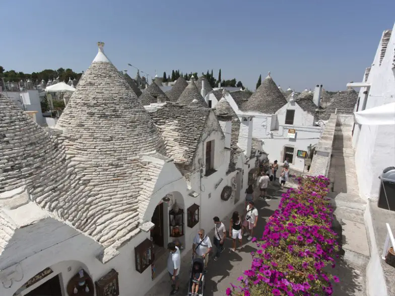 Alberobello, con sus estructuras trulli únicas, se parece más a una ciudad de una película de Disney que a la Italia moderna. Las cabañas cónicas de piedra caliza blanca se extienden por todo el pueblo y se hicieron populares en el siglo XV entre los residentes que esperaban evitar impuestos. Solo se pueden encontrar en la región de Puglia y muchos están disponibles para estancias cortas. Mientras esté aquí, puede explorar museos y tiendas que venden aceites de oliva locales y golosinas de almendras, junto con animadas tabernas que sirven algunos de los mejores antipasti que probablemente haya probado. Asegúrese de hacer tiempo para una comida en uno de los restaurantes familiares que también sirven comida tradicional del sur de Italia.