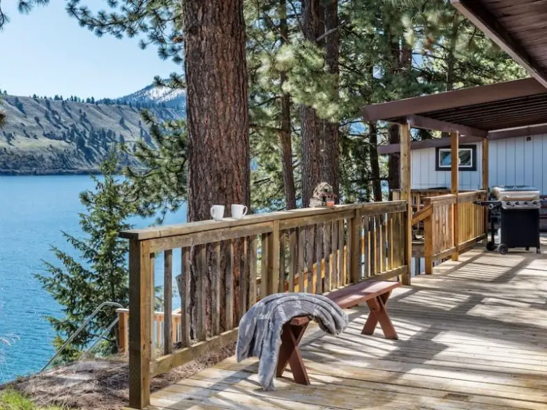 Otra propiedad de Airbnb que vale la pena considerar para tu viaje a Wallowa Lake es esta casa para hasta ocho personas. Tiene dos dormitorios, cuatro camas y 2.5 baños. Esta casa tiene una increíble terraza con vista al lago Wallowa y también una mesa de billar para juegos familiares. Ven aquí para disfrutar de un plano de planta abierto, espacio al aire libre y un patio bien mantenido. El área al aire libre también tiene un muelle privado para botes. Los arreglos para dormir aquí son una cama tamaño king en un dormitorio, dos camas tamaño queen en otro dormitorio y una cama tamaño queen en el área común.