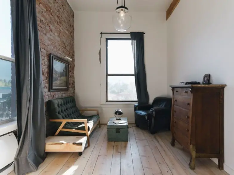 Puede hospedarse en esta habitación en un hotel boutique para su viaje al lago Wallowa y disfrutar de hermosas vistas desde el primer hotel y residencia de artistas del mundo financiado por Kickstarter. Tiene capacidad para dos personas y tiene un baño compartido, así como una cocina común, biblioteca, balcón y sauna. La casa tiene grandes ventanales que dan a las montañas y se exhiben obras de arte originales. Los huéspedes duermen en una cómoda cama tamaño queen y se sientan en un cómodo sillón y sofá de dos plazas aquí. En general, es un espacio acogedor y elegante para una escapada relajante en pareja.
