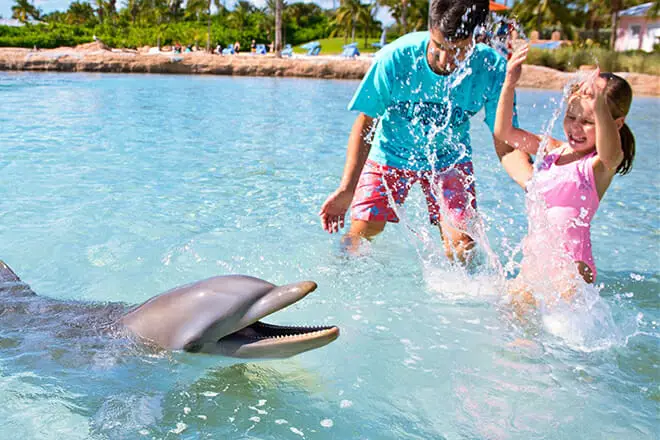 ¿Qué hacer en las Bahamas con niños? ¡Conozca, salpique, nade, sea amigo de delfines y leones marinos amistosos! También les encantan las selfies.