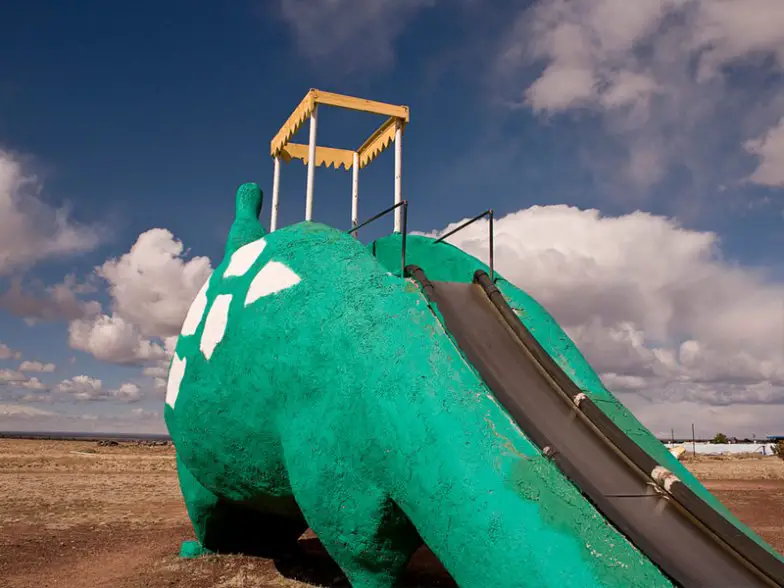Las familias disfrutan especialmente de detenerse en esta atracción única de Arizona. A los niños les encantará deslizarse por el tobogán de brontosaurios, mientras que los padres disfrutarán de la comida en Fred's Diner. El restaurante tiene un menú con el tema de los Picapiedra, donde encontrará elementos como una hamburguesa Bronto, un sándwich Fishasaurus y un pastel de grava, entre otros platos divertidos.