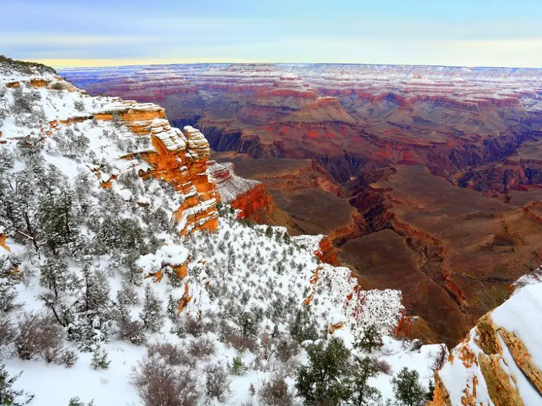 El verano es el momento más popular para visitar el Parque Nacional del Gran Cañón, y también es el momento más activo para el tráfico y las multitudes. Para un tipo diferente de experiencia en el Gran Cañón, considere visitarlo en invierno. ¡No hay nada como ver el cañón cubierto por una capa de nieve fresca! Para una experiencia más aislada y salvaje en el verano, considere visitar el Borde Norte en lugar de (o además) el Borde Sur.