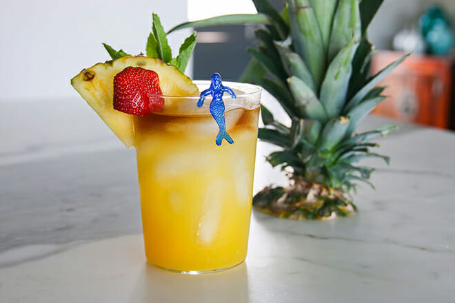 Esta bebida tropical es perfecta para relajarse bajo el sol, elaborada con ron de coco, jugo de piña, jugo de limón, Triple Sec y más.