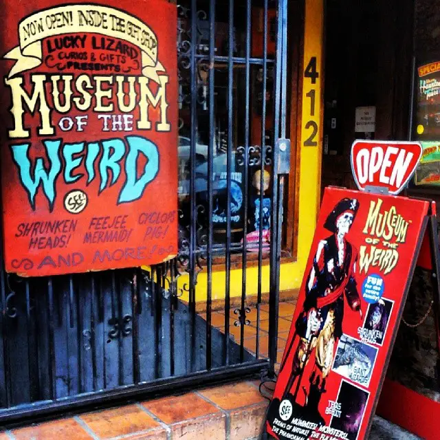 Desde cabezas reducidas hasta una versión de tamaño natural de Frankenstein, las exhibiciones únicas en el Museo de Weird se pueden encontrar en la parte trasera de la tienda Lucky Lizard. El dueño de la tienda comenzó con una colección de rarezas, que creció hasta convertirse en un museo propio. Lucky Lizard es ahora la tienda de regalos del museo.