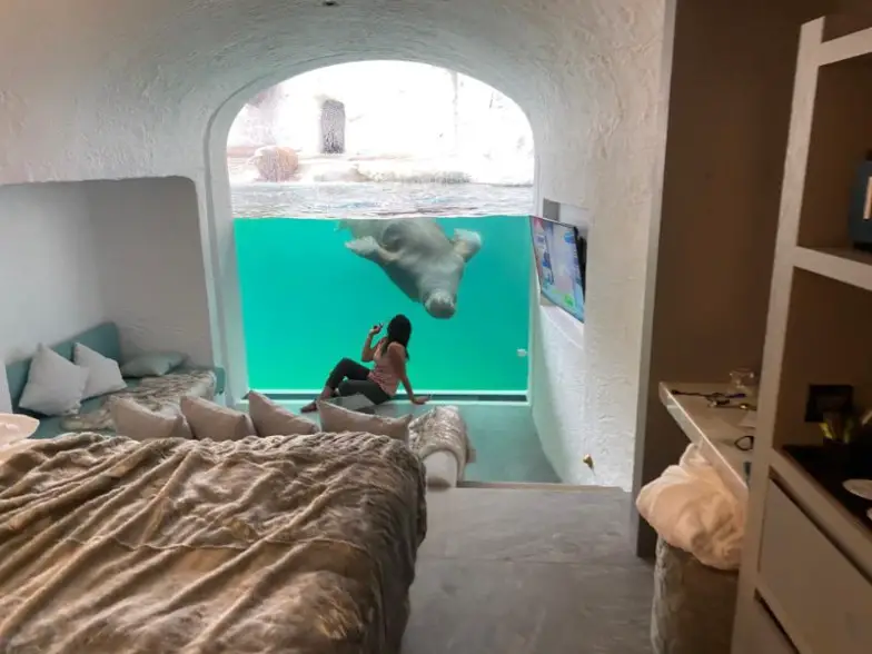 Los amantes de los animales pueden disfrutar de una de las habitaciones únicas que ofrecen vistas privadas a los hábitats del zoológico. Incluso hay una habitación en la que puede despertarse con un oso mirando y otra que da a un tanque de morsas.