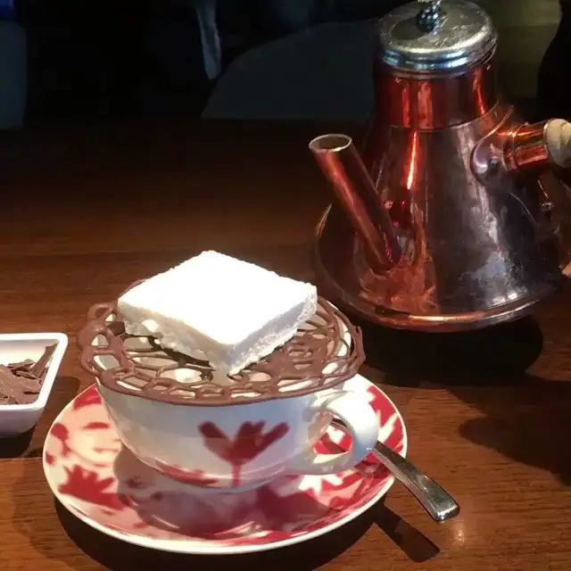 Creada por el chef pastelero ejecutivo Andrew Schweska, esta lujosa bebida de chocolate está hecha con chocolate suizo, malvaviscos y crema chantilly. La bebida de chocolate en realidad llega en una olla de chocolate caliente francesa tradicional. La leche al vapor y el chocolate Valrhona se baten y se mezclan junto a la mesa. Y no creas que puedes simplemente verter esta mezcla de chocolate y leche directamente en una taza. Un enrejado de chocolate negro y malvavisco casero se asienta sobre la taza y se derrite cuando se vierte la rica bebida sobre ellos.