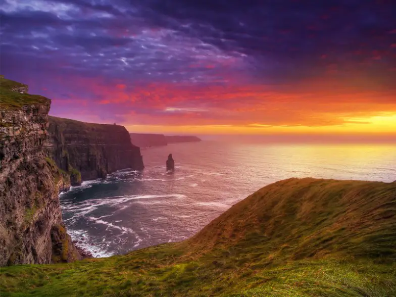 Un viaje de tres horas lo llevará a Doolin, hogar de lugares populares como los acantilados de Moher. Si lo visitas en un buen día, es probable que disfrutes de los sonidos de músicos talentosos que tocan una melodía en lo alto de los acantilados para complementar la vista. A poca distancia en auto se encuentra la cueva Doolin, con la estalactita colgante más larga del hemisferio norte. Suspendida del techo como un candelabro, la Gran Estalactita de 23 pies de largo es increíble, formada a partir de una sola gota de agua durante miles de años. El pueblo en sí es considerado la capital de la música tradicional irlandesa: McDermott's, O'Connor's y McGann's son los tres pubs más famosos para disfrutarla.