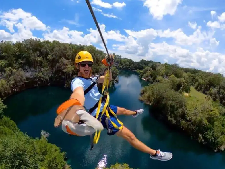 En un estado llano como Florida, probablemente no esperaría ver todo, desde enormes cañones con altísimos acantilados rocosos que se elevan sobre lagos resplandecientes y árboles centenarios, pero esta fascinante área cuenta con todo eso y más, con una docena de emocionantes tirolesas. líneas que lo atraviesan todo.