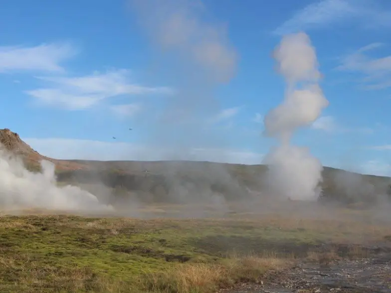 Si tiene tiempo, puede incluir una parada en el área de aguas termales de Geysir cuando visite Gullfoss. También ubicado en el Círculo Dorado, a poca distancia en automóvil, está salpicado de pozos de lodo hirviendo y géiseres en erupción, incluido Strokkur, que estalla 100 pies en el aire cada cinco a 10 minutos. El homónimo del área, Geysir, es menos activo y rara vez entra en erupción hoy. Aquí hay una serie de excelentes caminatas: si se dirige a la cima de la colina que domina el área, obtendrá una vista especialmente deslumbrante.