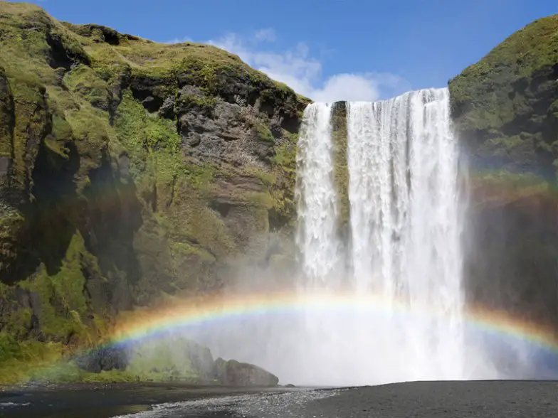 Una de las cascadas más famosas de Islandia, Skogafoss, a poco más de dos horas de Reykjavik, ha aparecido en varias películas y programas de televisión, incluidos "Vikingos" de History Channel y la película de Marvel "Thor". A medida que fluye el gran volumen de agua, produce un sonido atronador y una niebla que produce un arcoíris que lo convierte en el sueño de cualquier fotógrafo en un día soleado. El camino que conduce a la cima de las cataratas sigue un río río arriba, donde esperan caídas aún más espectaculares.