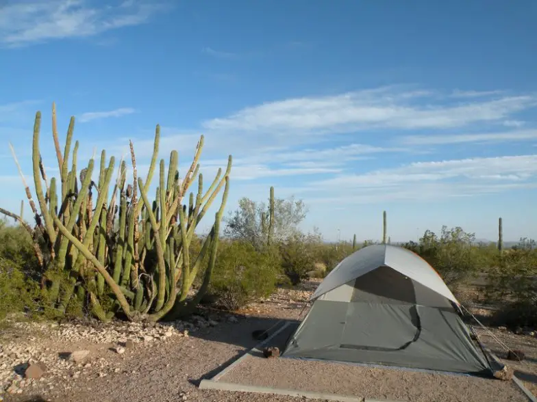Un destino popular para acampar , pasar la noche en el Monumento Nacional Organ Pipe Cactus ofrece una experiencia pacífica y una excelente manera de ver los amaneceres y atardeceres épicos. Twin Peaks Campground tiene capacidad para tiendas de campaña y vehículos recreativos y cuesta $ 16 por noche. No hay conexiones para vehículos recreativos, pero hay una estación de agua dulce y una estación de descarga que los campistas pueden usar. Mientras tanto, la tarifa de Alamo Canyon Primitive Campground es de $ 10, y el campamento en el campo cuesta $ 5 por viaje.
