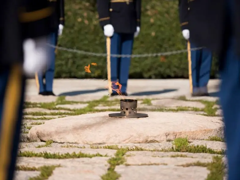 La tumba de Kennedy y la Tumba del Soldado Desconocido son dos de los lugares más populares para visitar dentro de la ceremonia y definitivamente visitas obligadas para quienes visitan por primera vez. El presidente Kennedy es uno de los dos únicos presidentes que serán enterrados en el cementerio y su lugar de entierro incluye la Llama Eterna, un fuego que arde dentro de una piedra circular de cinco pies en la cabecera de su tumba. La llama, que fue encendida por la Sra. Kennedy en el funeral del presidente en la década de 1960, ha estado ardiendo continuamente desde entonces.