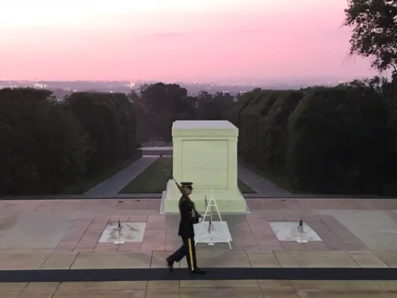 La Tumba del Soldado Desconocido rinde homenaje a todos los soldados estadounidenses caídos en combate, cuyas identidades se desconocían. El gran sarcófago de mármol blanco que proporciona el telón de fondo del sitio que se encuentra en una colina que domina Washington DC, se encuentra sobre la tumba del Soldado Desconocido de la Primera Guerra Mundial. En el otro lado, hay criptas de Soldados Desconocidos de la Segunda Guerra Mundial, la Guerra de Corea y la Guerra de Vietnam.