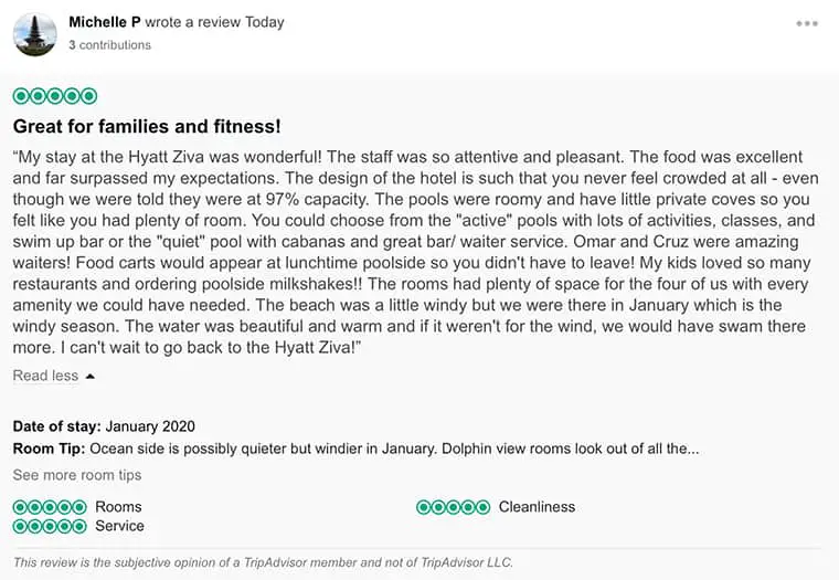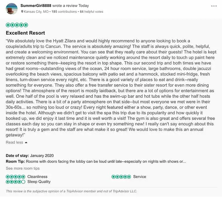 Del mismo modo, Hyatt Zilara recibe buenas críticas, con algunas reservas sobre el servicio.