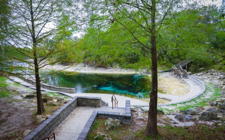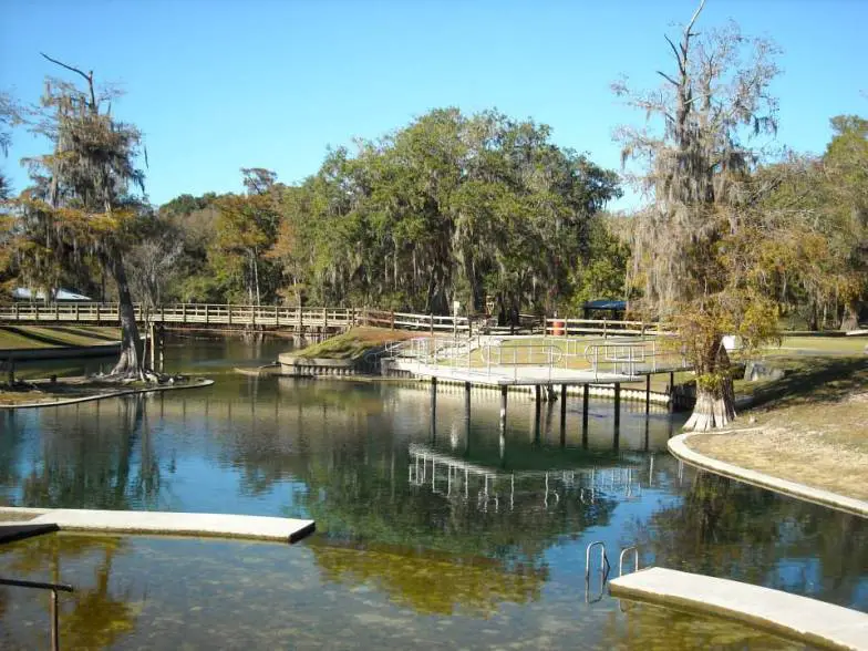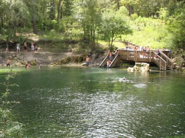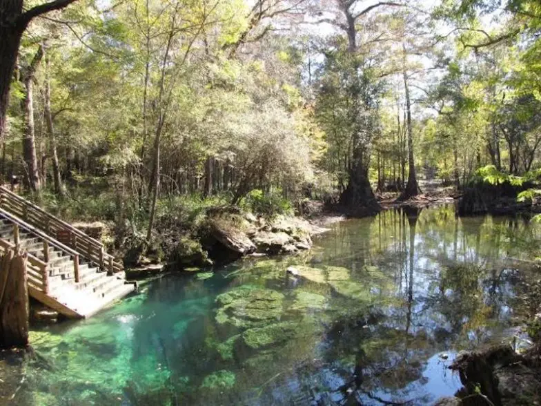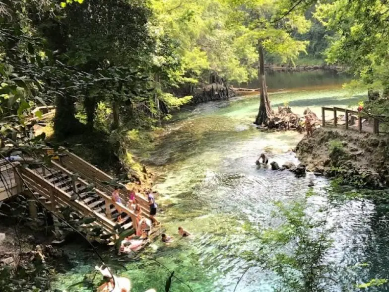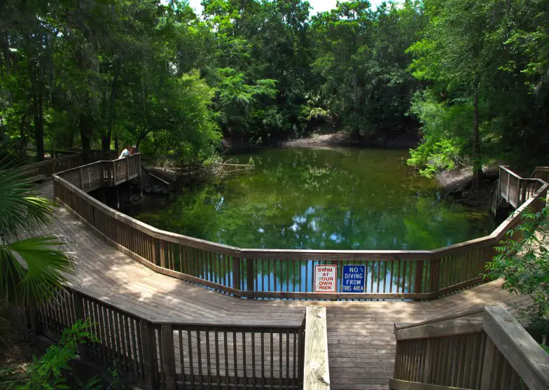 Si bien Branford Springs es fácil de encontrar, todavía se considera uno de los secretos mejor guardados de Florida para los amantes de la naturaleza que buscan un oasis tranquilo. Ubicado al sur de la intersección de la US 27 y la US 129, este hermoso manantial de Branford está ubicado en Ivey Memorial Park. Es un pintoresco hoyo para nadar con solo 15 pies de profundidad, pero es accesible para los nadadores a través de un conveniente paseo marítimo. Con su ubicación tan cerca del río, la calidad del agua depende de los niveles del río.