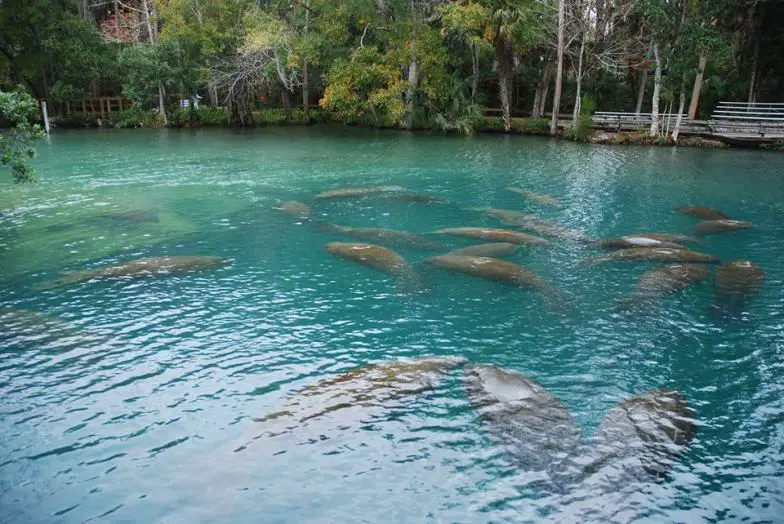 Ubicado en Chiefland, Manatee Springs cuenta con un enorme paseo marítimo de 800 pies que serpentea a lo largo de su bosque de cipreses. También alberga uno de los manantiales de primera magnitud más bellos de Florida, que data de hace 10 000 años y produce casi 100 millones de galones de agua al día. Si bien es un destino ideal para refrescarse en verano, el invierno trae una razón completamente nueva para visitar: los manatíes. Además de nadar, también puede explorar 8.5 millas de senderos naturales y el Sendero Estatal Nature Coast apto para bicicletas.