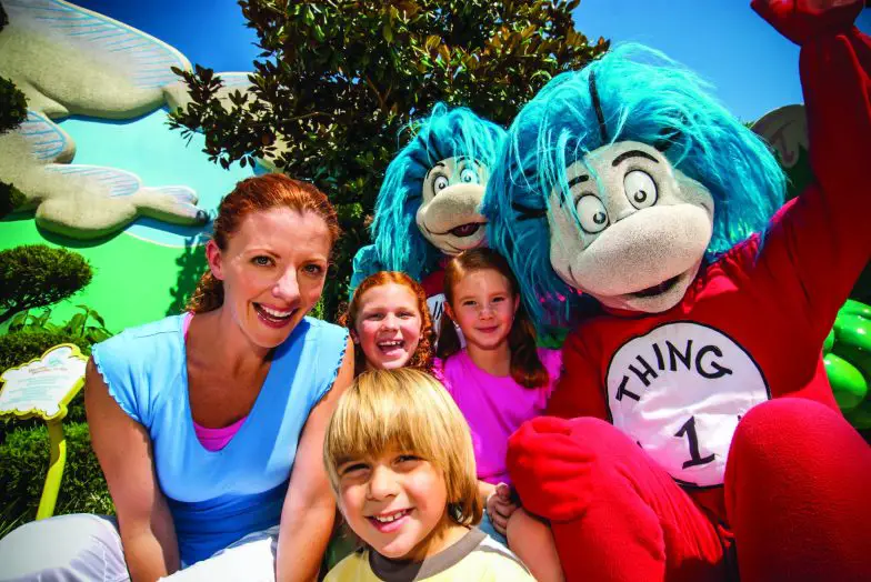 - Seuss Landing: Seuss Landing es más que solo una atracción, es una tierra completa con el tema del Dr. Seuss con cuatro atracciones, un área de juegos acuáticos, personajes y opciones gastronómicas extravagantes, todo diseñado solo para niños.