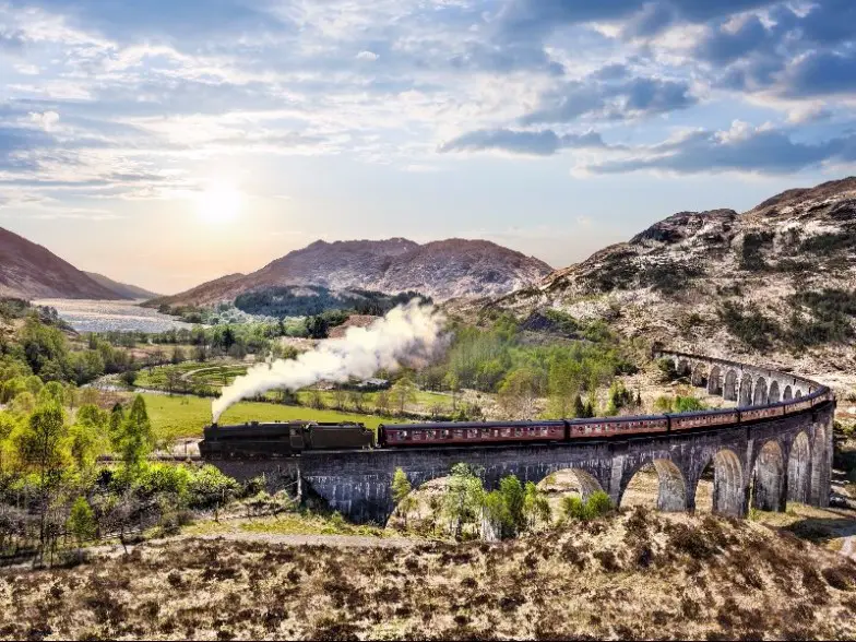 Un tren de vapor de cuento de hadas que va desde Fort William en Escocia hasta la costa oeste de Escocia en Mallaig, los fanáticos de Harry Potter podrían reconocerlo como la misma ruta que recorrió el Expreso de Hogwarts en la serie. Ofrece impresionantes vistas de la campiña ondulada de Escocia, el tren Jacobite es donde los fanáticos de Harry Potter pueden imaginarse a sí mismos en un mundo real de magia mientras pasan por vistas dignas de una postal y sobre el mismo puente por el que viajó Hogwarts Express.