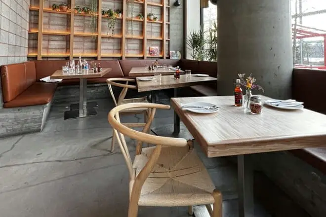 Esta pizzería revestida de ladrillos ofrece un ambiente informal y acogedor gracias a su elegante estética industrial y su menú fácil de apreciar.